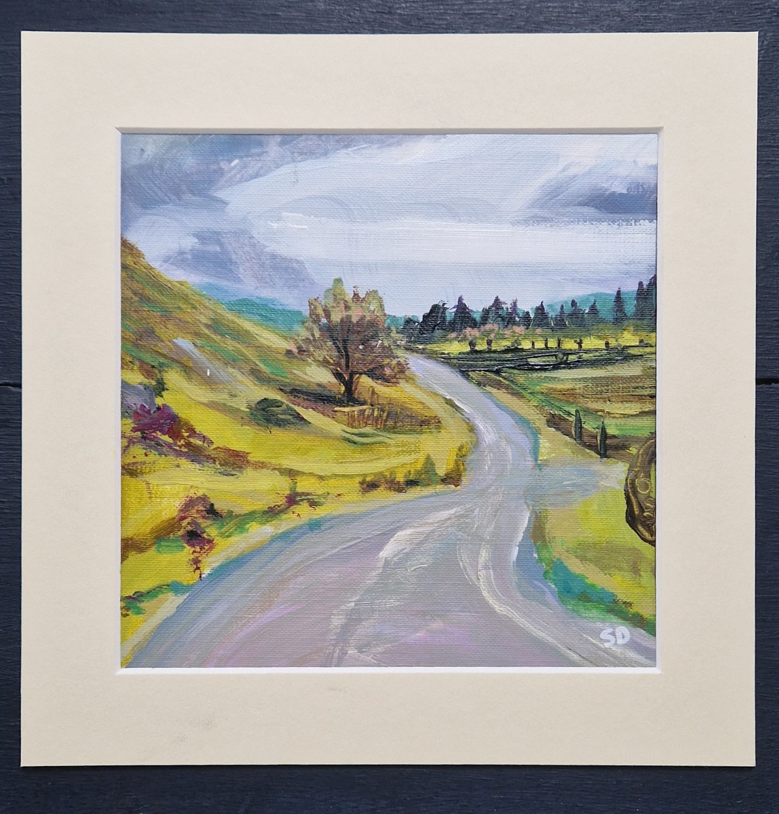 Acrylic original painting on paper. Mounted in an 8″ x 8″ cream mount ready for you to frame.