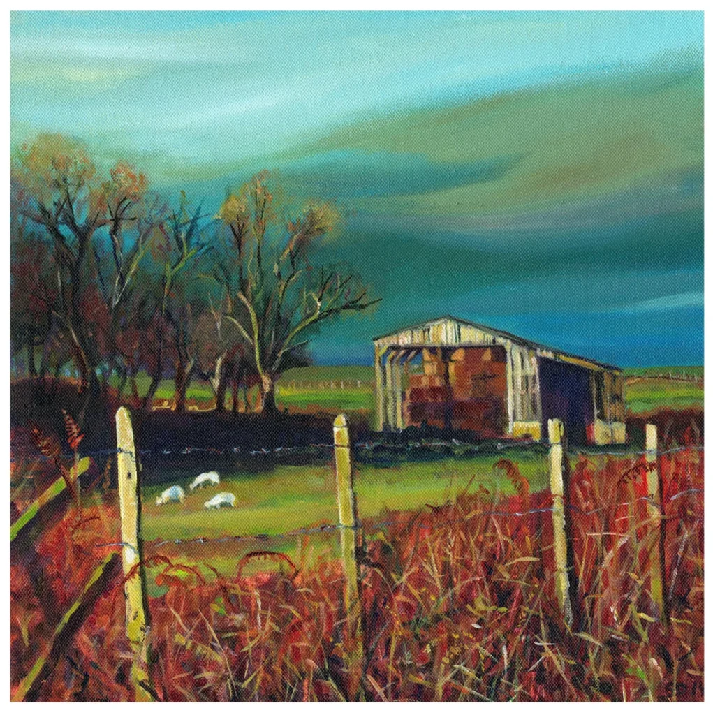 Ltd ed Giclee print of Hayloft the barn that was damaged by the lightning struck tree just after I painted it…Outside edge size including cream mount 50 cms x 50 cms image size 30 cms x 30 cms.